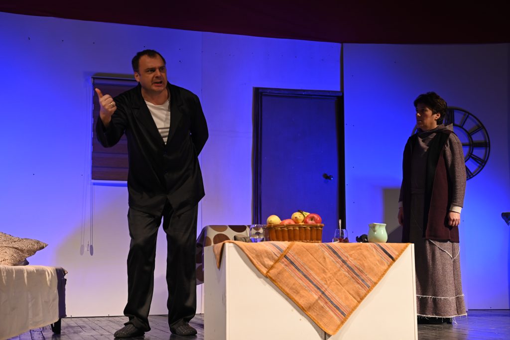 Në Qendrën e kulturës “Koço Racin” Kërçovë u paraqit premiera e shfaqjes teatrale “Nëse mbetesh në shtëpi” nga Karoj Sakoni, një dramë bashkëkohore hungareze. Pjesëmarrës në dramë: Mihajlo Petrevski dhe Violeta Petkoska; Skenografia është përgatitur nga: Dervish Zeqiri, Emin Emini, Mersim Efatoski; Kostumet dhe dekorimi i skenës: Aleksandra Petrevska; Mjeshtër Dritash: Fazli Asani; Përzgjedhja e muzikës dhe videoklipit: Mateo Petrevski; Zëri i Google: Branislav Stojanoski; Regjia: Mihajlo Petrevski. Edhe pse drama është shkruar në shekullin e kaluar, paraqet problemet e një çifti të martuar që janë ende aktuale edhe sot por që paraqiten në mënyrë moderne.